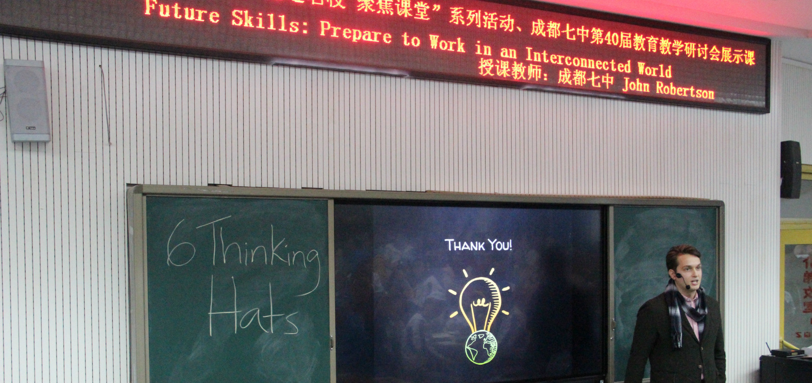 On December 14th, Mr. John Robertson (teacher from Chengdu No.7 High School International Department) presented an International Understanding demo course to all the teachers who come from different cities in China. John worked with Chengdu No.7 High School students to deliver an excellent class to all the audience.