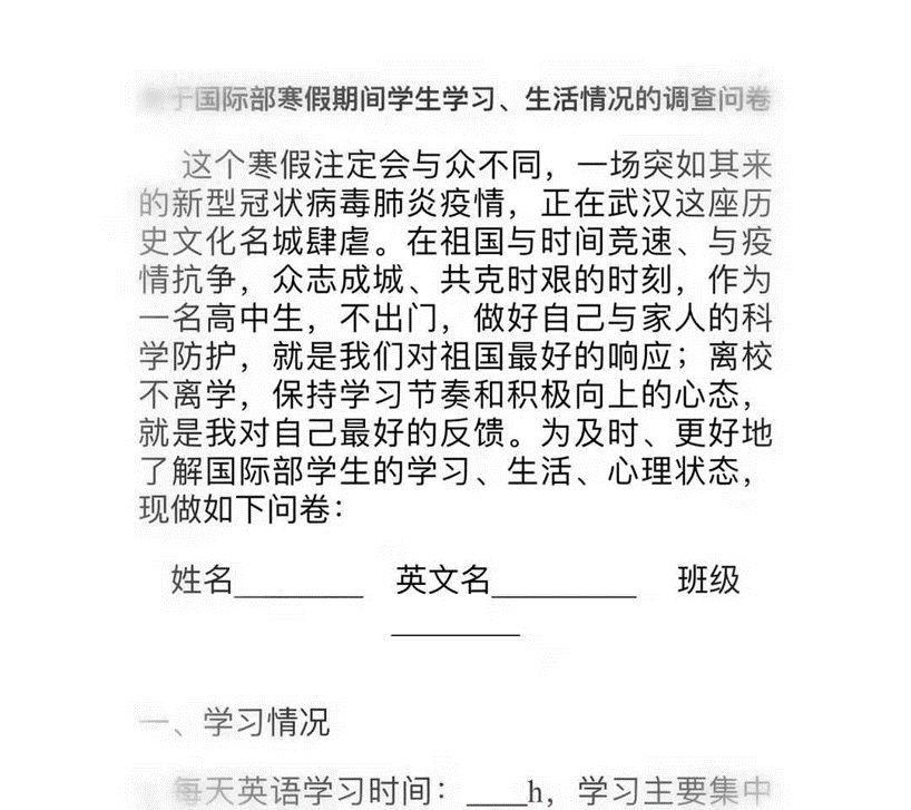 The school set up an epidemic working group to guide and implement the prevention and control during the outbreak. The school also comprehensively guides students and parents in home protection by reprinting the epidemic prevention Manual of Suzhou Education Bureau. At the same time, through reminder letters, appease the anxiety of students and parents, and care about the health of Chinese and foreign teachers. In addition, through the interpretation of university application, visa application and standardized examination, students and parents of the international department will be reassured. The school also issued questionnaires to students, urging them to maintain a positive state of study and make full use of every day of the holiday.