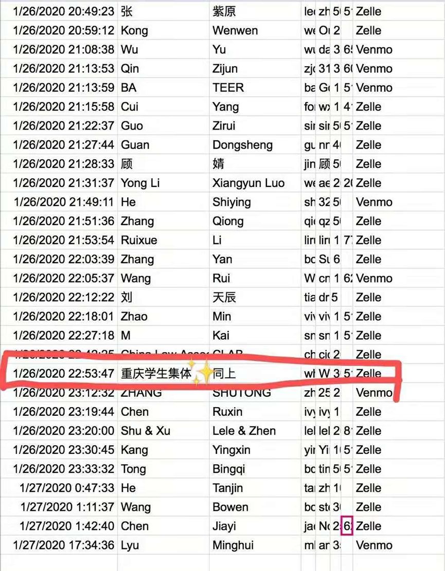 Alumni Fan and current students jointly organized a fund-raising campaign. The funds raised will be purchased and transported to Wuhan by the Chinese Students' Union of overseas universities.