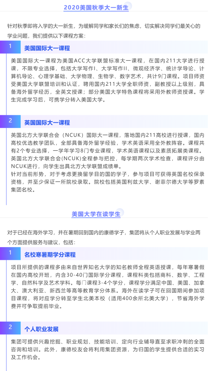 自七月初美国政府发布国际学生签证新规以来,康德教育即刻启动了紧急应对机制,成立专项小组,从学子们重点关注的出行准备、大学政策解读、航空公司服务、签证服务、专题讲座、学术课程及体系六个方面,持续提供帮助与服务,满足不同留学阶段康德学子的需求,保障他们的权益。